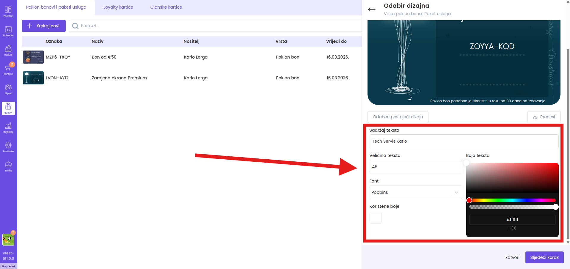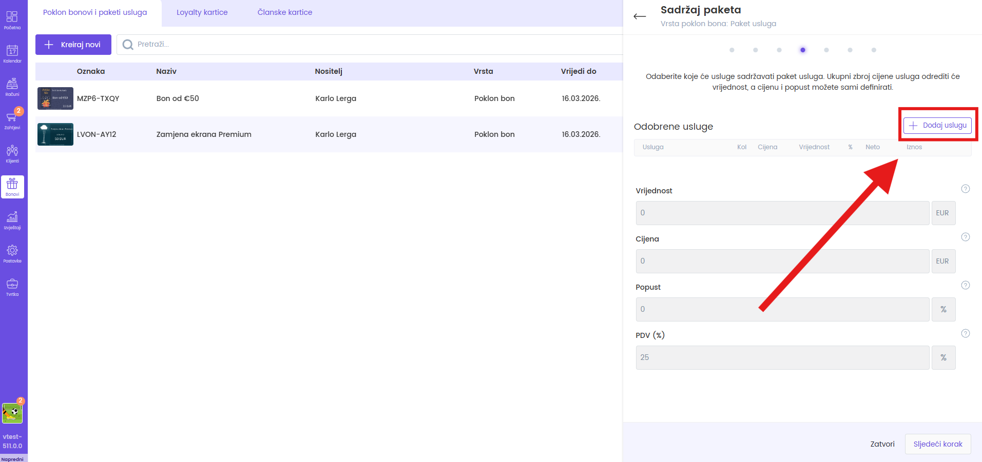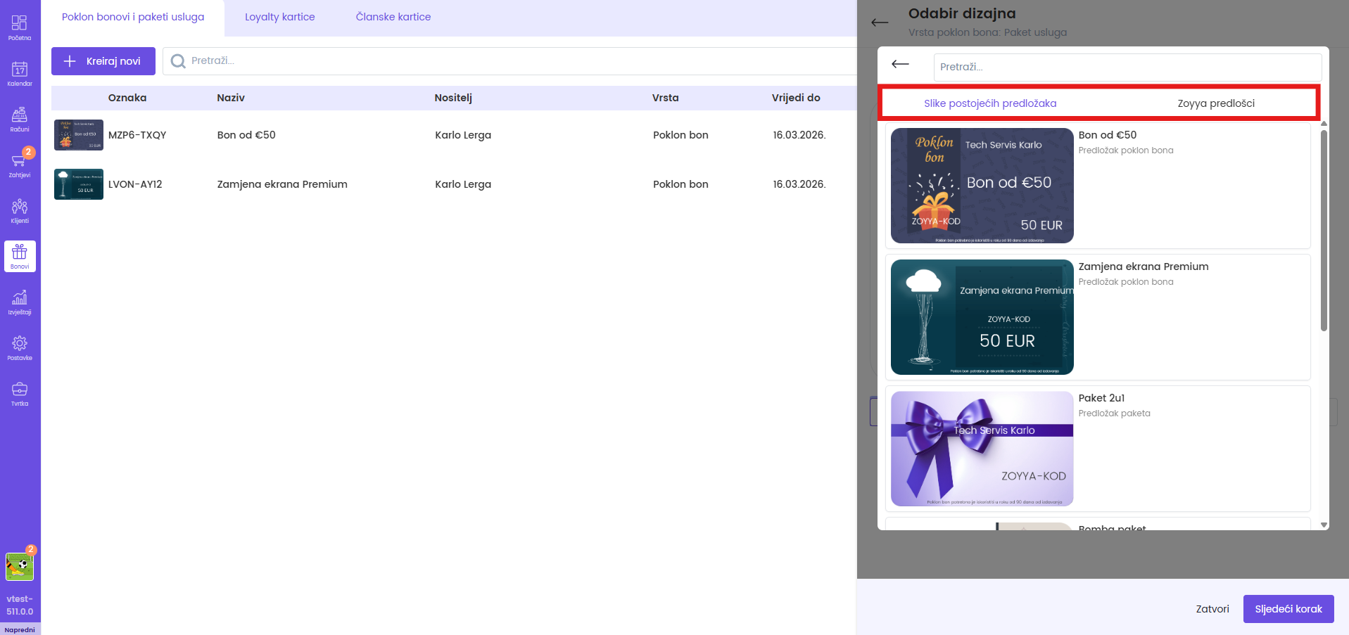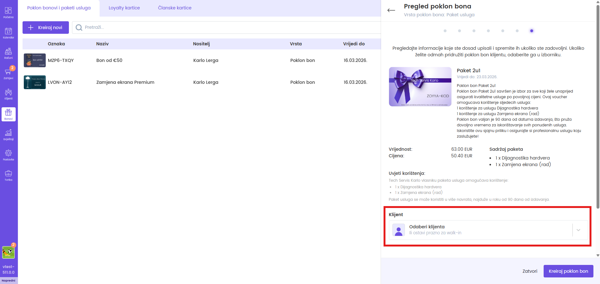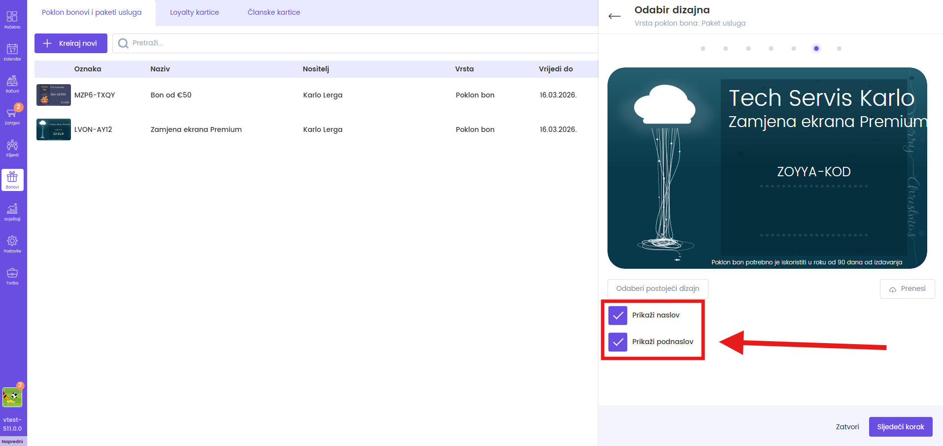 Za kreiranje poklon bona pratite sljedeće korake: