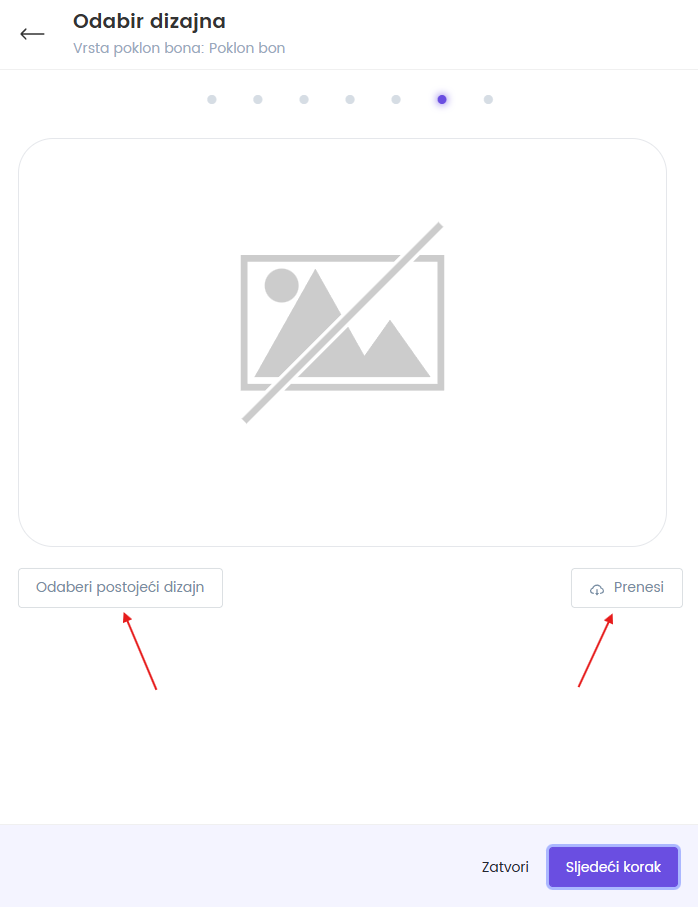 Na početku koraka Odabir dizajna odmah možete odabrati postojeći dizajn ili prenijeti vlastitu sliku.